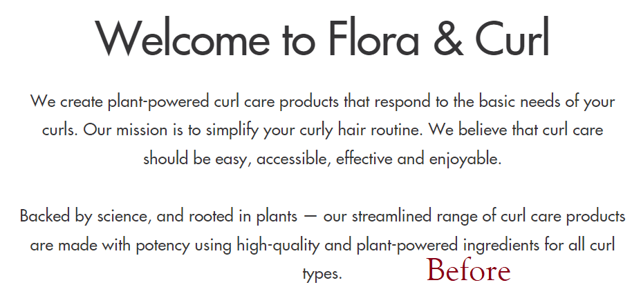 To show the magic I can work on your web page, check out this comparison. Flora and Curl’s founder, Rose, has a central philosophy – “less is more.”